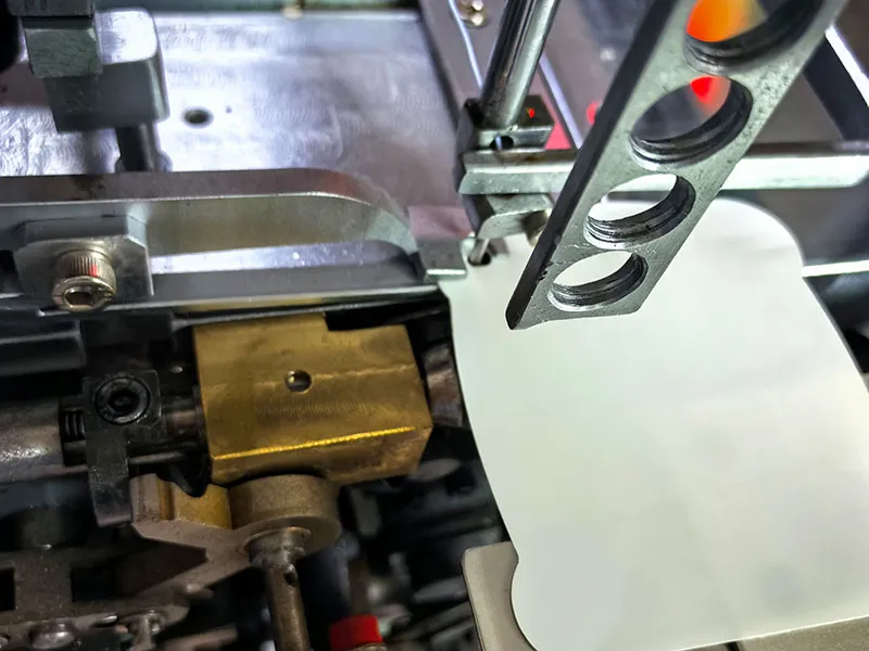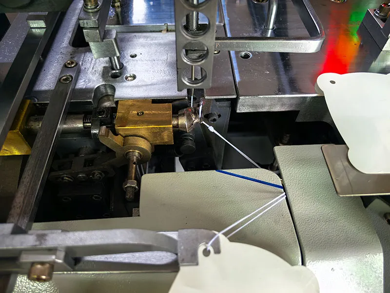 The machine automatically completes tag loading, side-position hole punching, stringing, knotting, and counting in a single integrated process. Completing all operations in a single process significantly improves production efficiency while effectively reducing labor costs.
