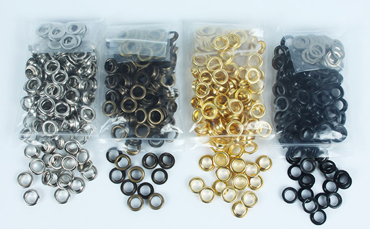 Our metal eyelets are made from durable copper material that is strong and solid. They are useful and fashionable accessories for leather, tents, awnings, canvas, tarps, and other cloth items. They can be applied for poking a hole on leather crafts, leather straps or clothing, then hammering to push grommets together. They strengthen and prevent holes from fraying in tarps, covers, and curtains.